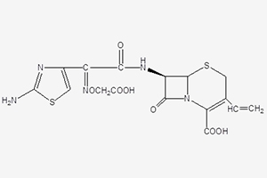 | Chemical name: | [6R-[6α,7 (Z)]]-7-[[(2-Amino-4-thiazolyl)[(carboxymethoxy)imino)acetyl]amino]-3-ethenyl-8-oxo-5-thia-1-azabicyclo[4.2.0]oct-2-ene-2-carboxylic acid |